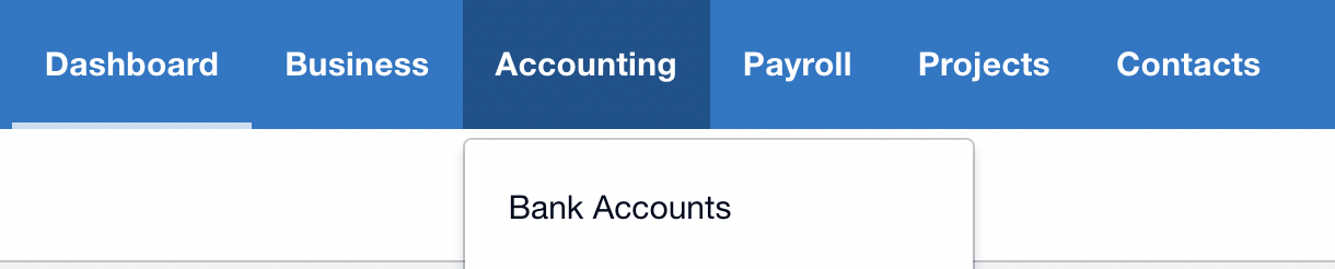 2. Click **Accounting** in the header menu and then **Bank Accounts** (above)